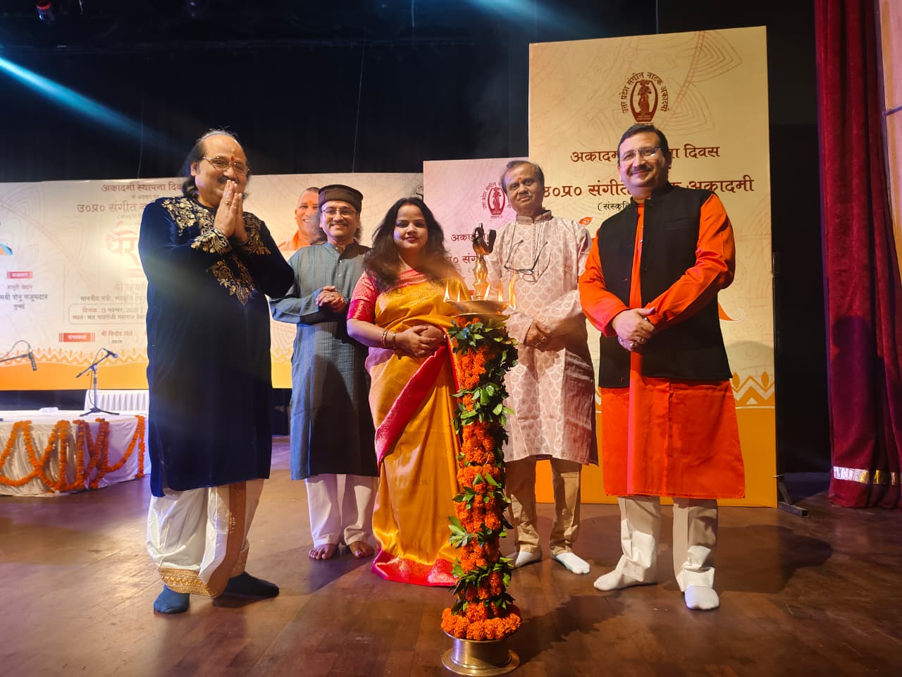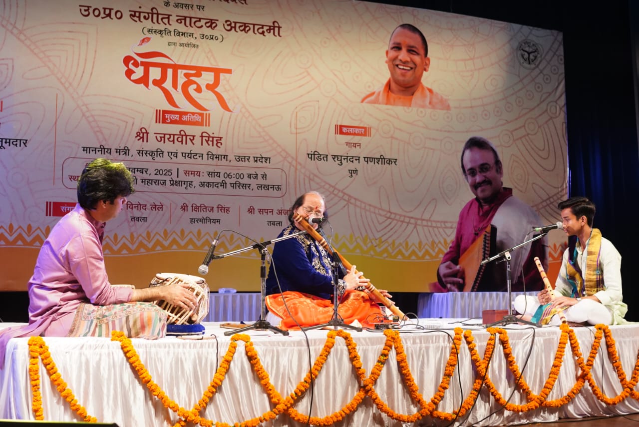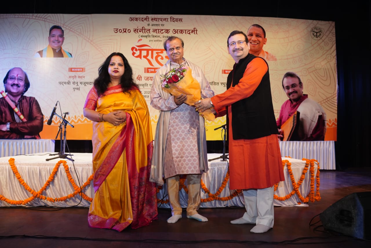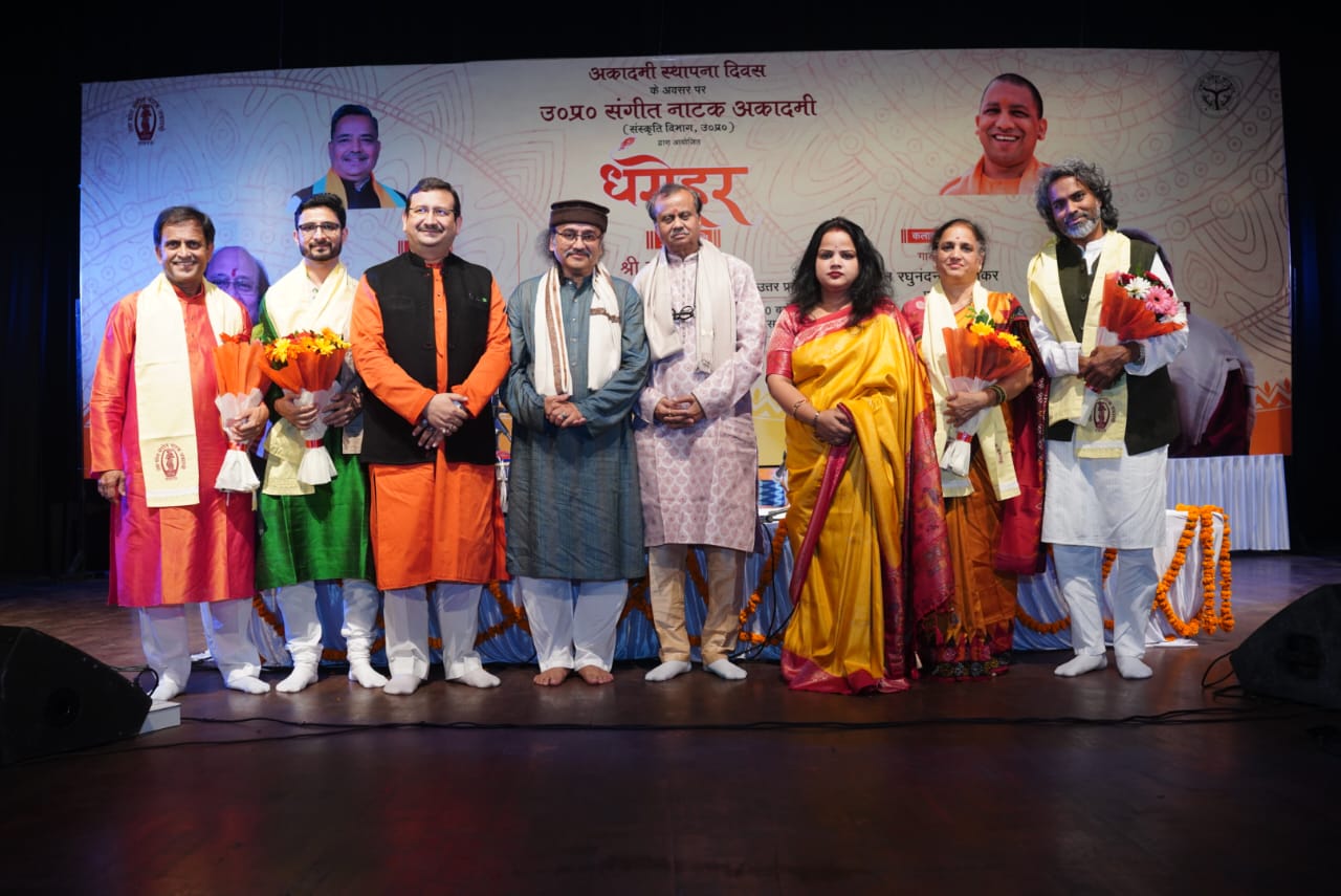 उत्तर प्रदेश संगीत नाटक अकादमी द्वारा अपने स्थापना दिवस के अवसर पर दिनांक 13 नवम्बर, 2025 को संत गाडगेजी महाराज प्रेक्षागृह में सांस्कृतिक कार्यक्रम का आयोजन किया गया। इस अवसर पर दीप प्रज्वलन के उपरांत अकादमी के निदेशक डॉ. शोभित कुमार नाहर द्वारा उत्तर प्रदेश संगीत नाटक अकादमी के अध्यक्ष प्रो. जयंत खोत और उपाध्यक्ष विभा सिंह का अभिनंदन पुष्प गुच्छ, अंग वस्त्र और स्मृति चिन्ह देकर किया। इस अवसर पर अकादमी के अध्यक्ष प्रो. जयंत खोत ने बताया कि उत्तर प्रदेश संगीत नाटक अकादमी की स्थापना 13 नवंबर, 1963 को हुई थी। बीते 62 वर्षों में अकादमी गायन, वादन और नृत्य तीनों संगीत के क्षेत्रों में प्रदेश के नवांकुरों को प्रोत्साहित कर रही है वहीं रंगकर्म के क्षेत्र में भी उल्लेखनीय योगदान दे रही है। इसके साथ ही राष्ट्रीय स्तर के संगीतज्ञों को आमंत्रित कर नवांकुरों को प्रेरित भी कर रही है। धरोहर समारोह भी इसी श्रंखला की अहम कड़ी है।